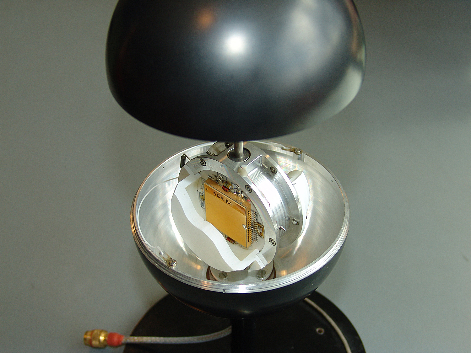 Samma langmuirprob framifrån. Bollen kom aldrig ut ur loppet, även om de två slutar-luckorna flög upp i smällen. Livslängd: ofattbarHur rymdsäkras instrumenten? Hur ser man till att elektroniken håller i mer än 40 år, som i Voyager? Det viktigaste är att elektroniken säkras så att den inte skakar sönder vid uppskjutningen. Det gör man genom att limma fast allt med epoxi. Efter uppskjutningen är det istället strålningen man har problem med. Flygvärdiga elektronikkomponenter måste vara extra stråltåliga. Typisk dos för en komponent i inre solsystemet, som i Solar Orbiter, är 70 kilorad under hela färden. Och då sitter kretsarna ändå innanför ett plåtskal. Strålbältena kring Jupiter är det mest strålningsrika området i hela solsystemet. Skulle man sitta utanpå en rymdfarkost där, skulle man få flera megarad stråldos. I den miljön har man svårigheter att få rymdfarkosten att fungera. Rymdfarkosten JUICE, som ska in i "hettan" är konstruerad för 300 krad och då är elektroniken ändå strålskyddad både med aluminium och tantal. Tantal är extra duktigt på att absorbera högenergetiska elektroner på flera megaelektronvolt. Strålningen förstör transistorer. Bipolära transistorer får sin förstärkningsfaktor förändrad och när det skjuts in laddningar i gaten på MOS-FET-ar kommer transistorn antingen att ligga ständigt till eller från, eller börja brusa. En tung kosmisk partikel kan gå tvärs igenom aluminiumlådan och slå sönder en komponent helt och hållet genom att den orsakar fria laddningar, slår loss elektroner, när den passerar, vilket resulterar i en strömrusning i komponenten så att denna brinner upp. Detta brukar man ta hänsyn till med en speciellt konstruerad strömförsörjning som undersöker om elektroniken drar höga strömpulser, och stänger då av väldigt snabbt. Överlevde komponenten kan man slå på matningen senare och fortsätta experimentet. The final frontier: Voyager